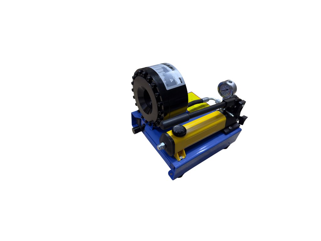 Představujeme vám vysokotlaký ruční hydraulický krimpovací stroj, který je navržen pro maximální výkon a spolehlivost při krimpování hydraulických hadic a potrubí. Tento profesionální nástroj je ideálním pomocníkem pro automechaniky, servisní techniky, stavební firmy a průmyslové provozy, kde je potřeba rychlé a kvalitní spojení hydraulických komponentů.